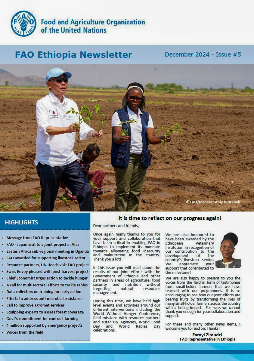 This edition showcases stories of FAO support to farmers, pastoralists, and communities across Ethiopia; progress made through our emergency and resilience...