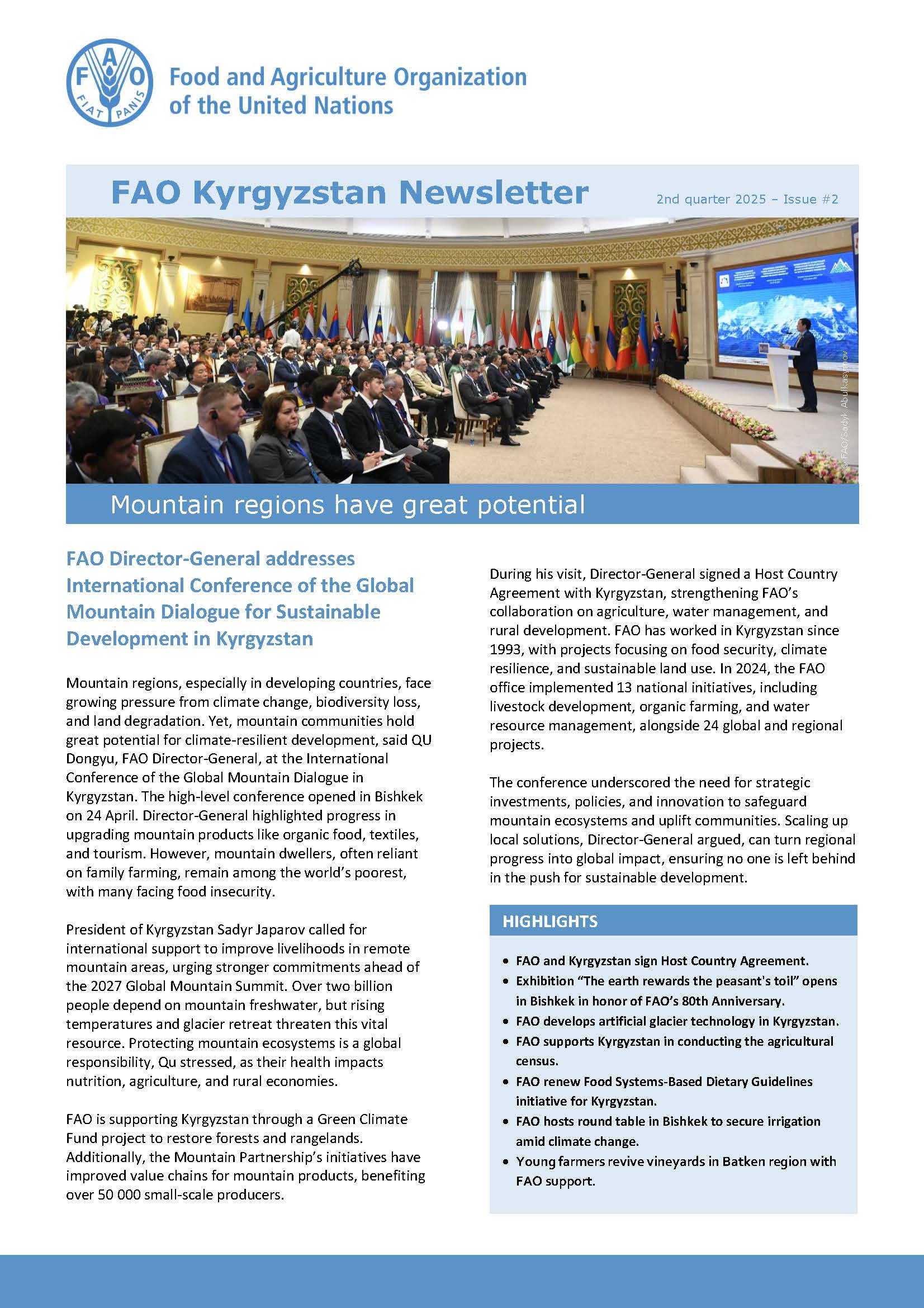 FAO Kyrgyzstan Newsletter, 2nd quarter 2025 – Issue #2
