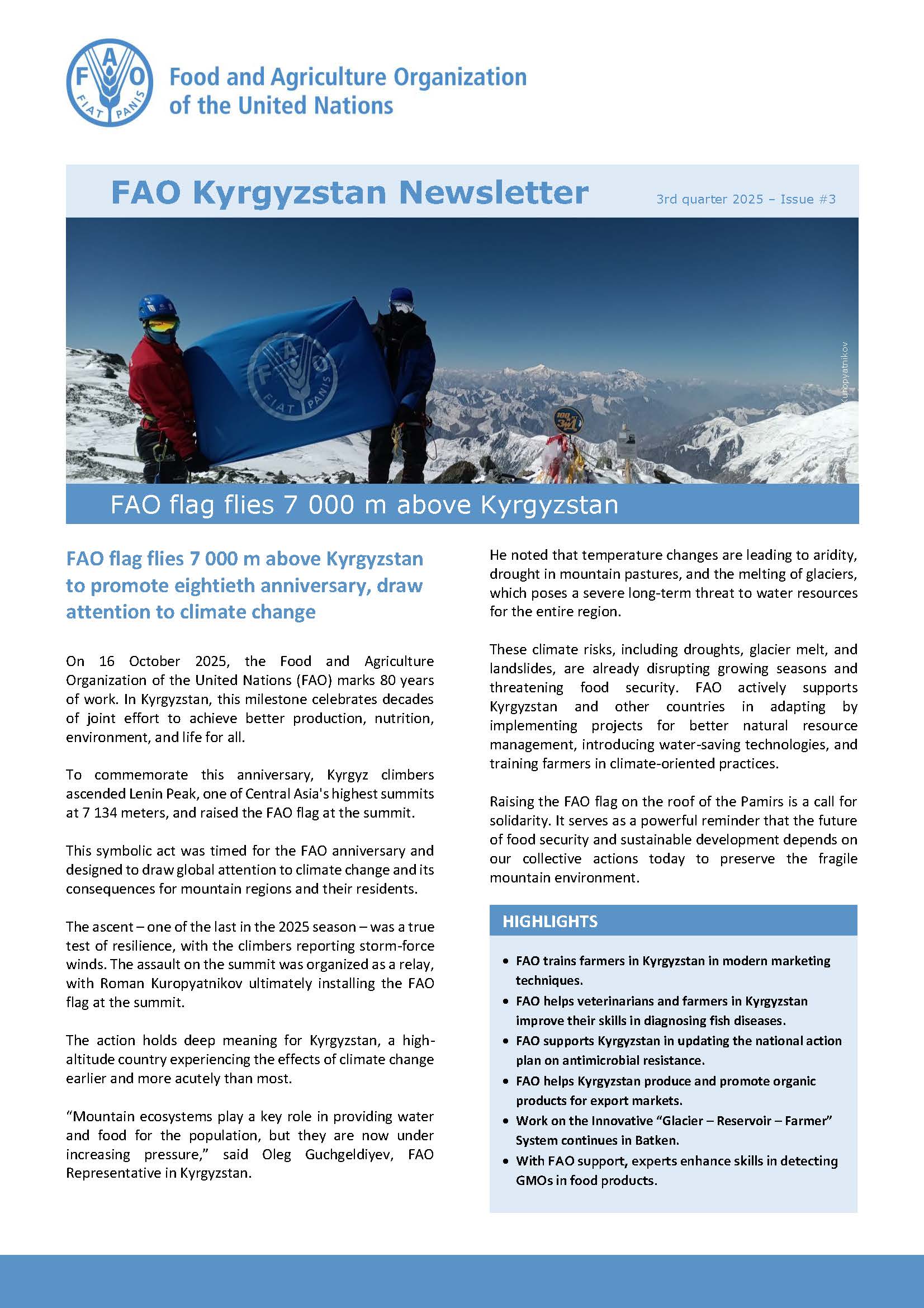 FAO Kyrgyzstan Newsletter, 3rd quarter 2025 – Issue #3