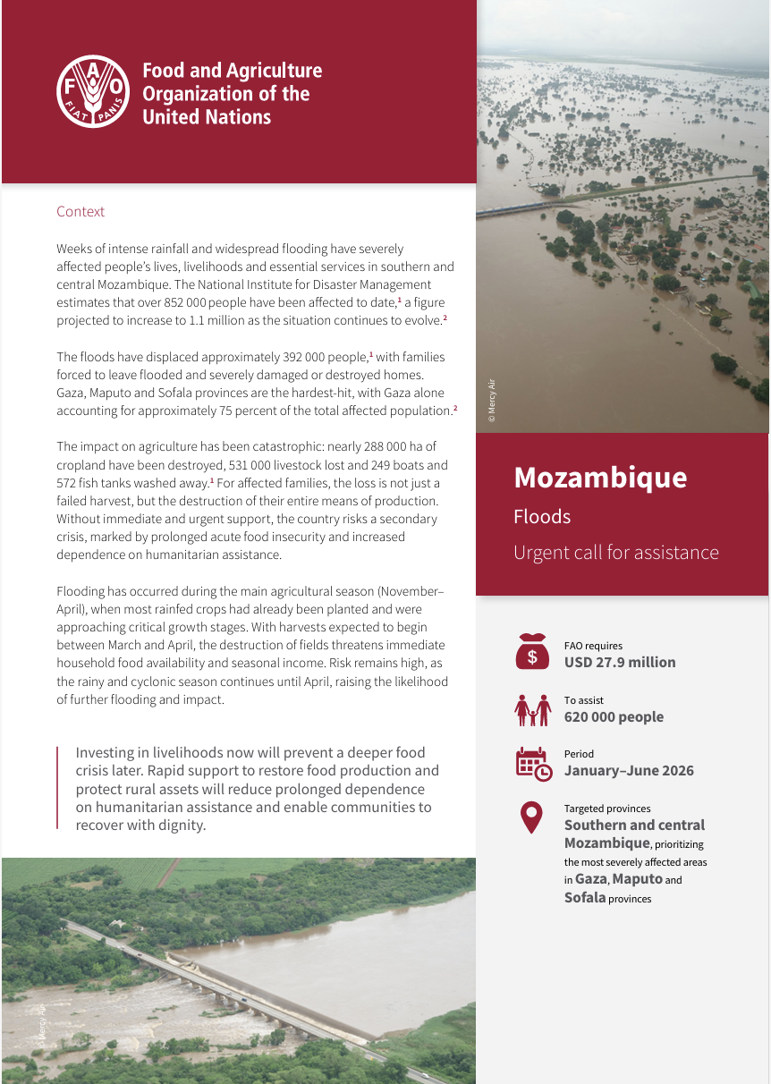 Mozambique - Rapid analysis of the impact of flooding on agriculture February 2026