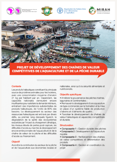 La Côte d'Ivoire est membre de la FAO depuis 1961 et l'Organisation est présente de façon permanente dans le pays depuis 1987. La FAO a exécuté plus de 300 projets dans les domaines du développement et des urgences agricoles. Après une décennie d'instabilité et de troubles sociaux (2000 - 2011), au cours de laquelle la coopération de la FAO s'est concentrée sur des opérations d'urgence et de réhabilitation dans le secteur agricole, la stabilité est de retour dans le pays.