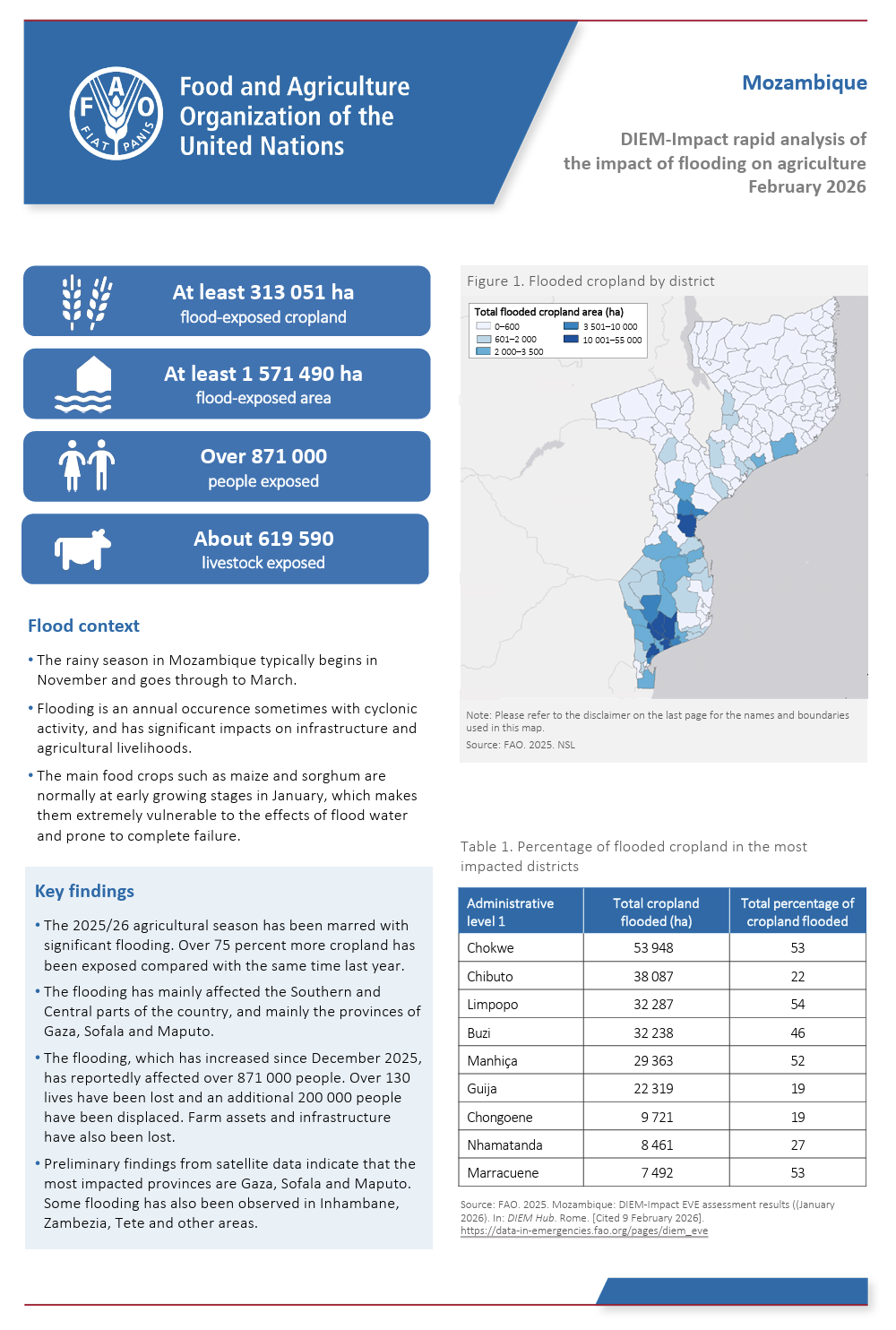 Mozambique - Rapid analysis of the impact of flooding on agriculture February 2026